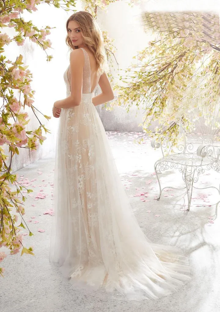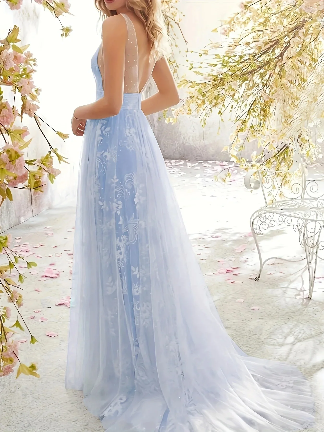 The Élora dress captures timeless romance with its ethereal lace design and flowing silhouette. Crafted from delicate, soft-touch fabric, it embraces the body with effortless grace while the sleeveless cut highlights feminine elegance. The subtle train adds a touch of luxury, perfect for weddings, ceremonies, or any moment worth remembering.