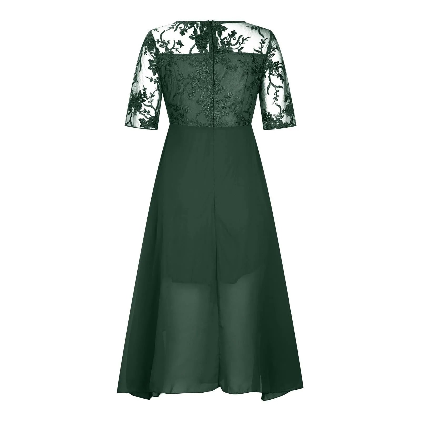 The Elayne dress embodies timeless elegance with a soft, ethereal touch. Designed in airy chiffon with delicate lace embroidery, it drapes beautifully at tea length, creating a graceful and feminine silhouette. The mock neckline and subtle detailing bring sophistication to every movement.