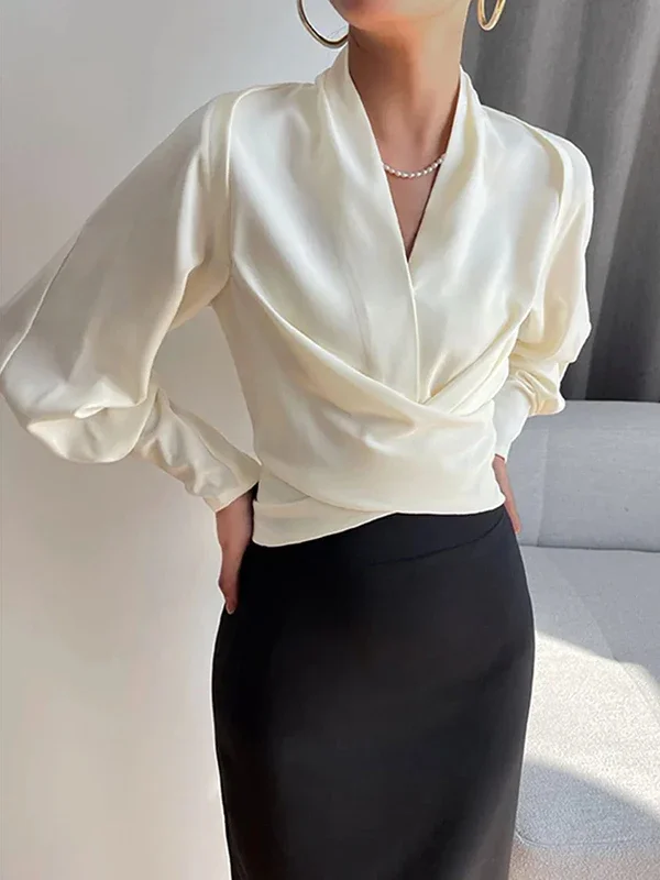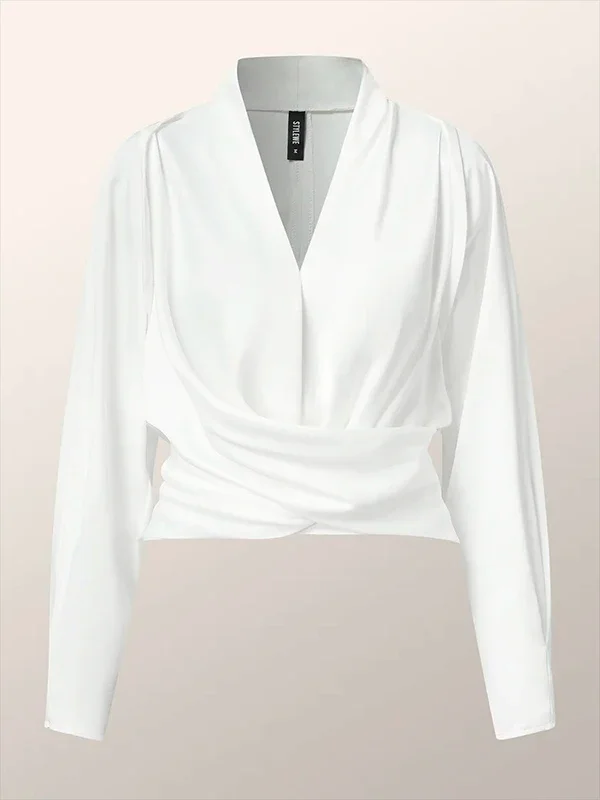 Selène – Pleated V-Neck Blouse